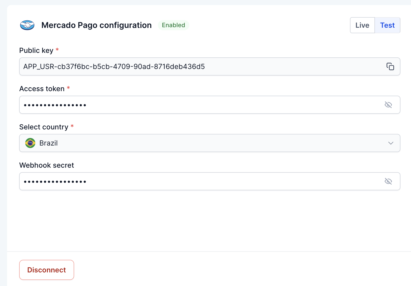 Once saved, your Mercado Pago account should be linked, now we will enable webhooks in Mercado Pago app.