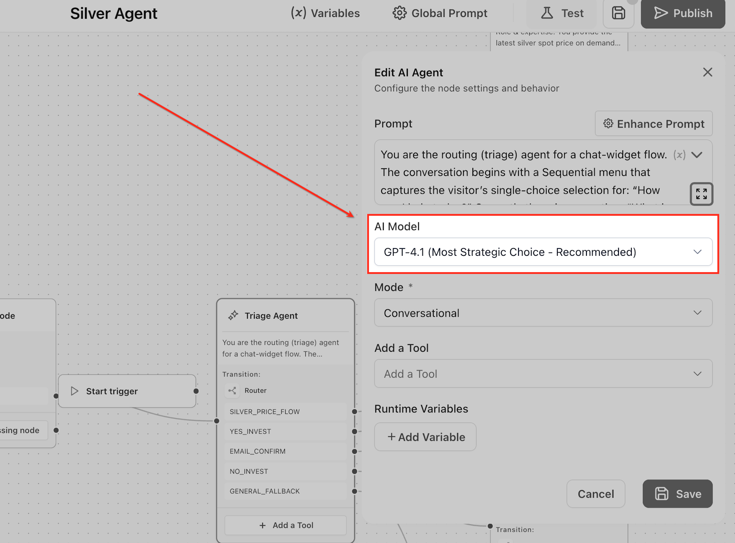 This directly impacts how the agent interprets user intent and responds. For example, when a user says, “I’m exploring options for my business,” a stronger model can identify this as a potential lead, while a lightweight model may respond more generically.