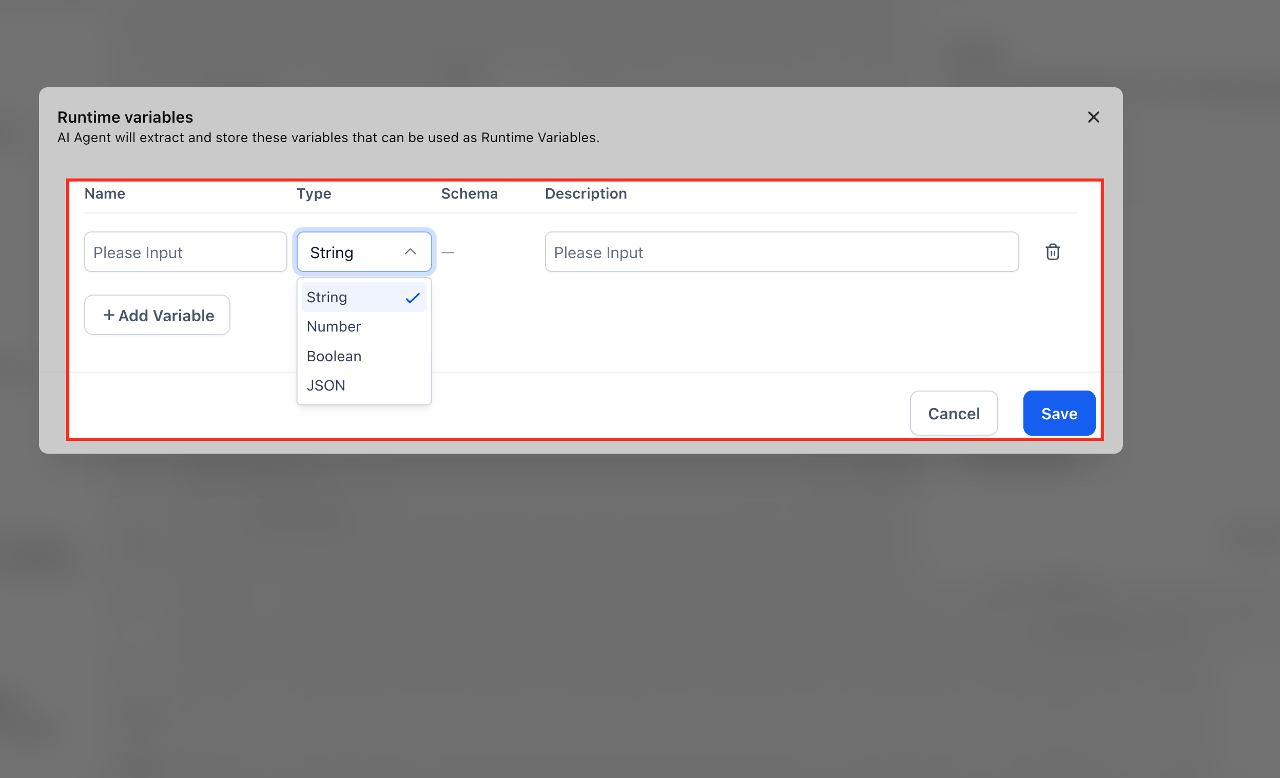 The AI Agent uses the Name and Description to understand what information to look for in the conversation and automatically extracts it during execution.